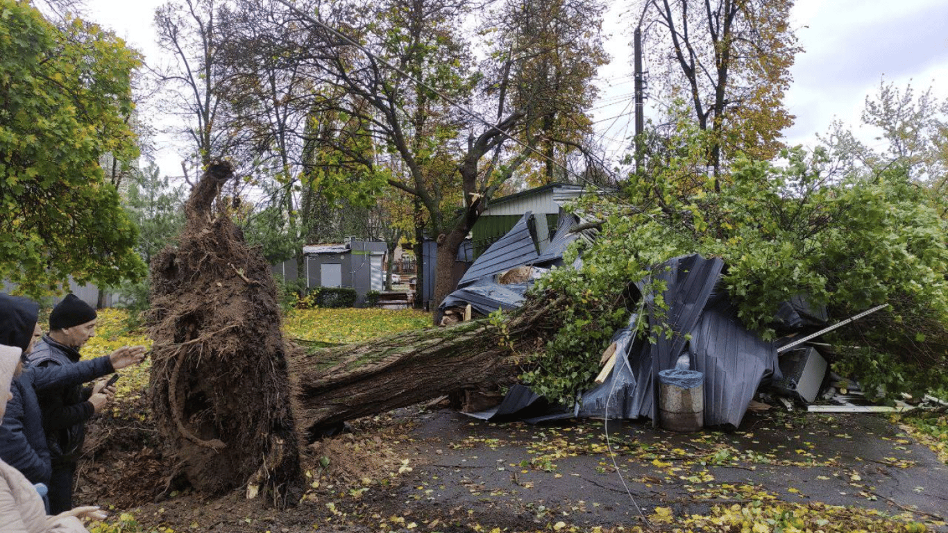 Сьогодні, 28 жовтня, у Києві внаслідок негоди було повалено багато дерев, які пошкодили різні об'єкти в місті. Також через природні явища загинули люди.