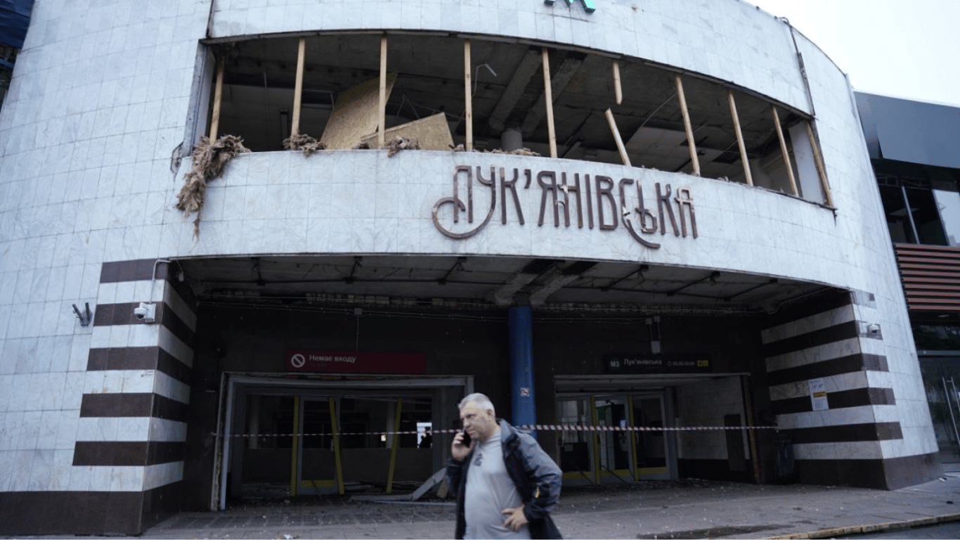 Окупанти 21 липня завдали по Києву комбінованого удару, під час якого столиця постраждала найбільше. Так, уламки ворожої ракети понівечили вхід до станції метро "Лук'янівська" — там вибило вікна та обвалило фасадну плитку. Станція вже відновила роботу.
