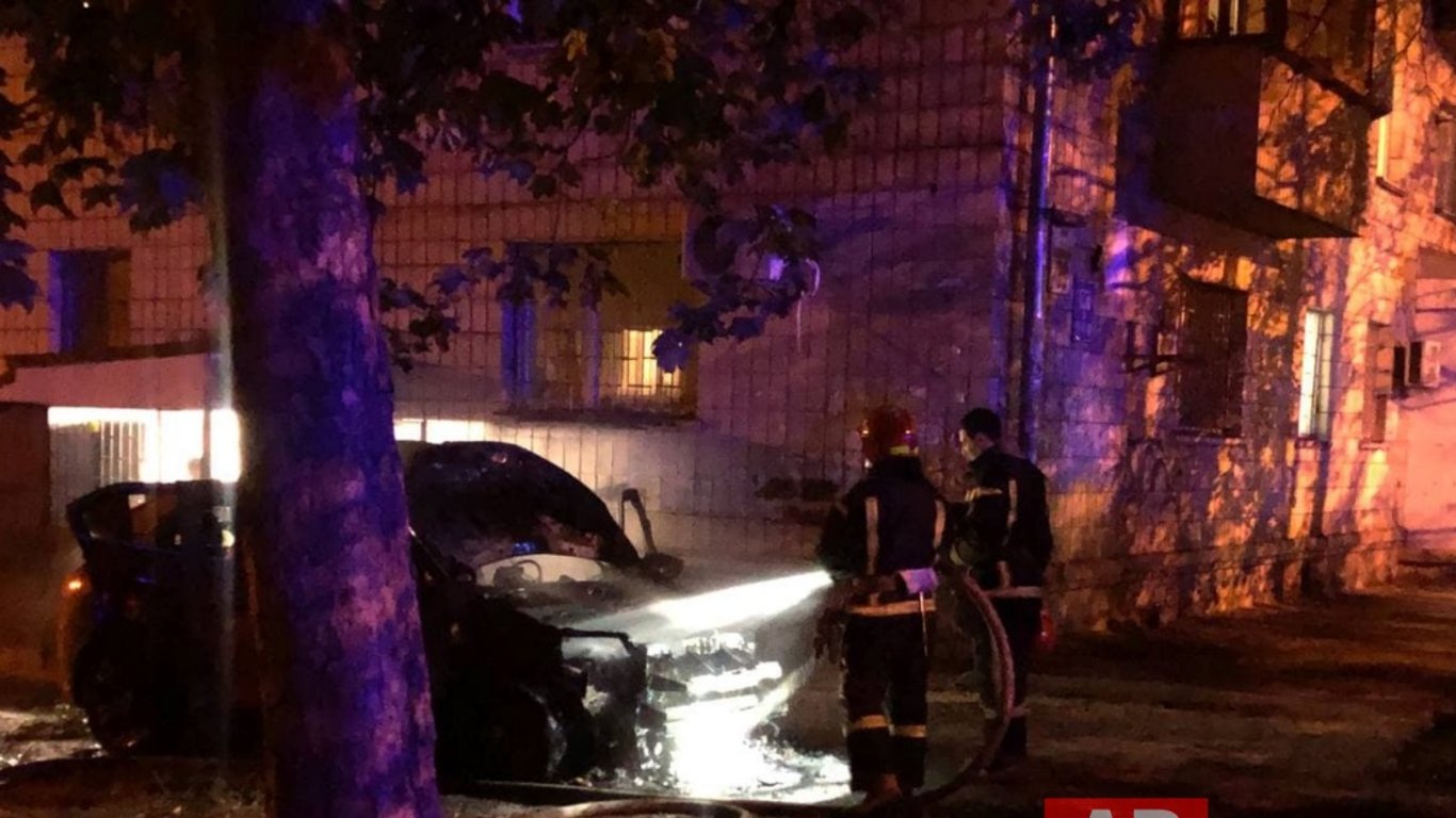 Іномарка спалахнула у дворі багатоповерхівки на Шулявці. Фото