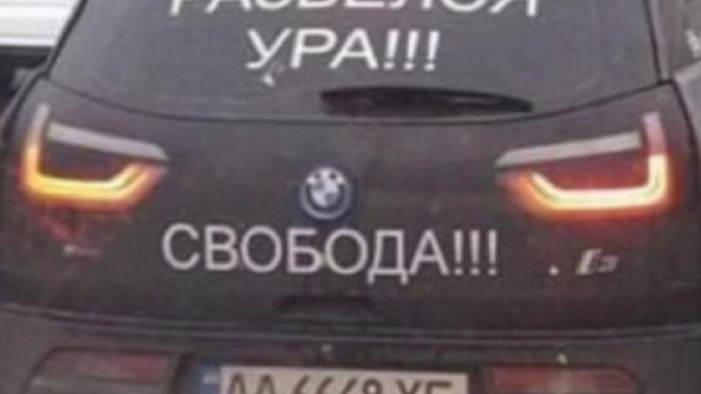 Житель столиці на радощах вирішив розповісти всьому Києву про те, що він нарешті вільний. На своєму BMW i3, власник автомобіля розмістив наклейки "Вільний" і "Розлучився, Ура!!!".