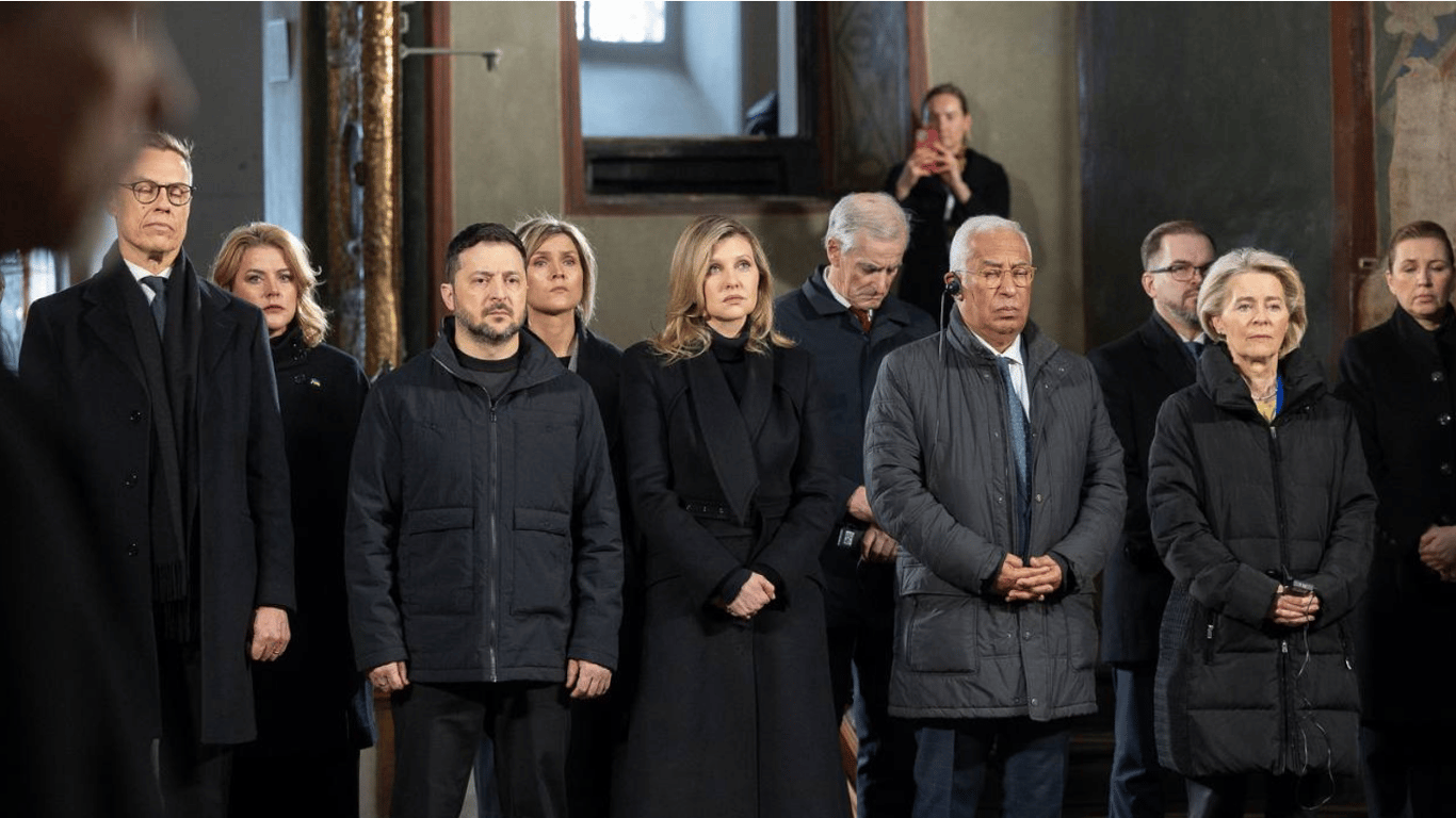 Сьогодні, 24 лютого, у Софійському соборі Києва відбувається молитва за Україну за участі президента Володимира Зеленського, першої леді Олени Зеленської та європейських лідерів. В роковини повномасштабного вторгнення таким жестом лідери країн вирішили вшанувати пам'ять загиблих українців від російської агресії.