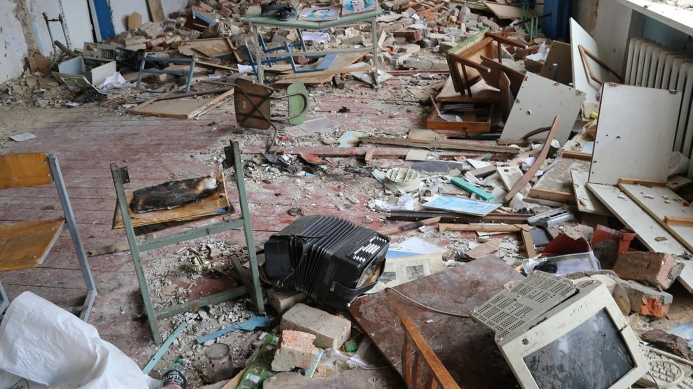 "У селі Кропивня зафіксував дикунські.."графіті" на стінах школи, де орки базувалися три тижні, а пізніше зруйнували приміщення" , - написав він.