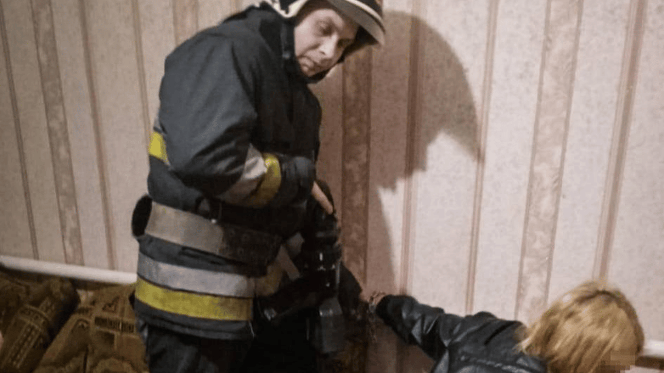 До рятувальників надійшло повідомлення від поліції про те, що потрібна допомога з перерізання металевого ланцюга. На місці вони побачили жінку, що була прикута ціпком до труби опалення.