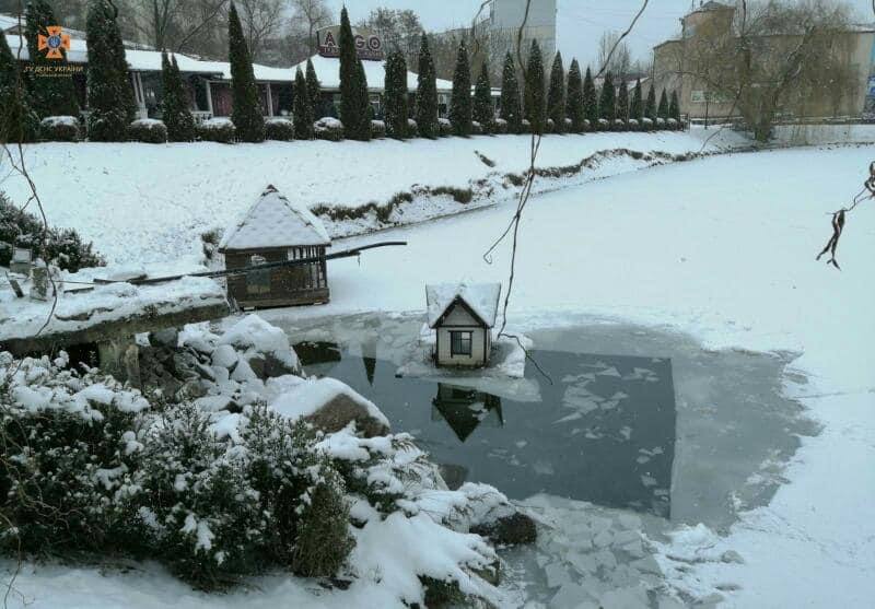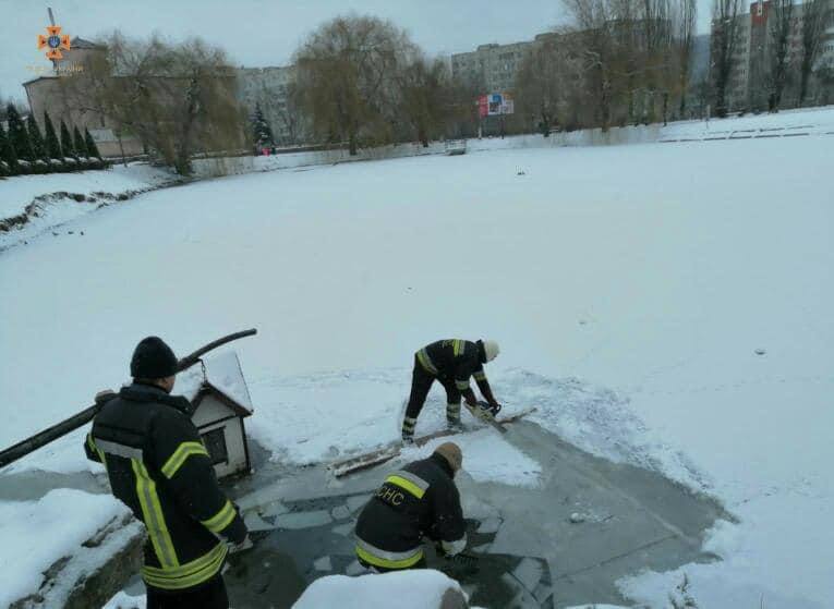 У кризі на ставку були вирізані ополонки, за допомогою яких качок звільнили від льодового полону.
