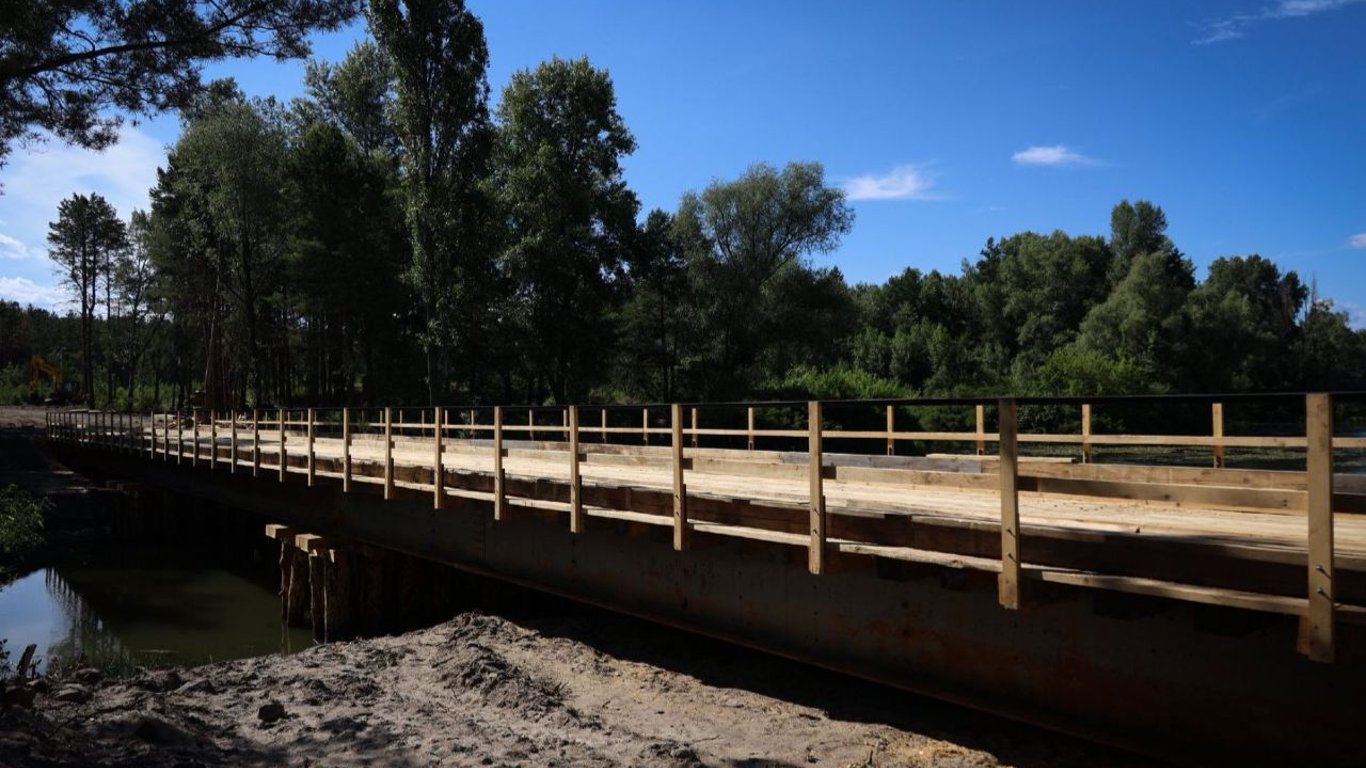 А поки що його функції виконуватиме дерев’яна тимчасова переправа, яку звели буквально за місяць. Споруда дозволить зняти транспортне напруження у цьому районі.