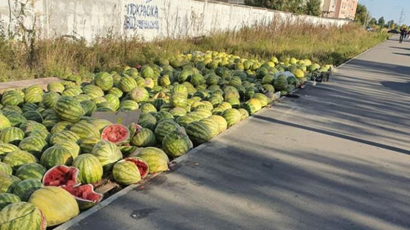 На Осокорках невідомі викинули врожай кавунів