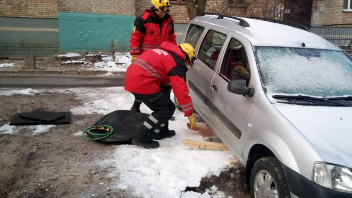 У середу, 2 лютого, в Солом'янському районі стався неприємний інцидент. На вулиці Ніжинській, 18 у дворі житлового будинку два автомобілі провалилися в яму.