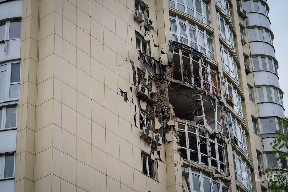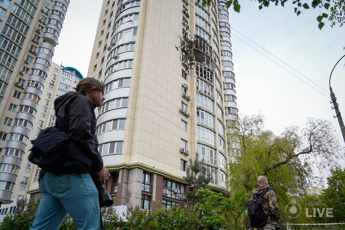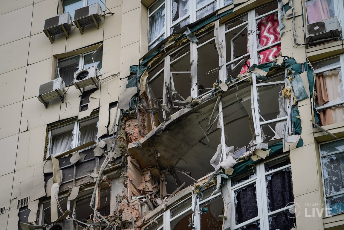 Наслідки влучання уламків ворожих БпЛА в будинок в Києві. Фоторепортаж