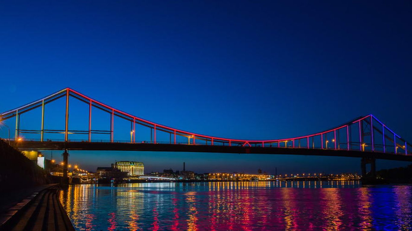 У "Київміськсвіті" сказали, що з нагоди Всесвітнього дня серця, з 29 вересня по 3 жовтня 2021 року парковий пішохідний міст засвітиться червоним світлом.