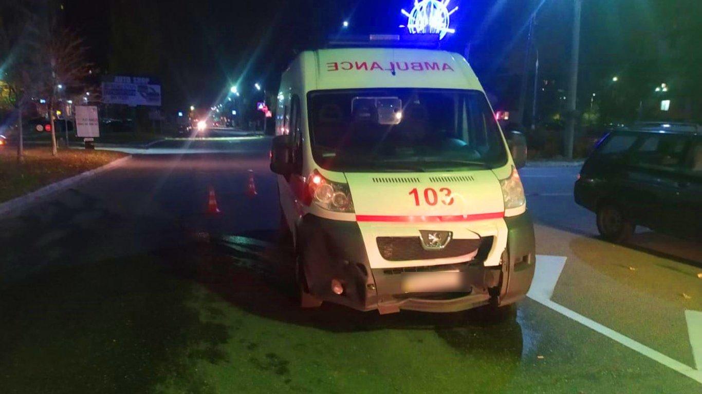 Водій машини швидкої допомоги (йому 55 років) не помітив, що перед пішохідним переходом стоїть легковий автомобіль марки Hyundai, внаслідок чого сталося зіткнення.