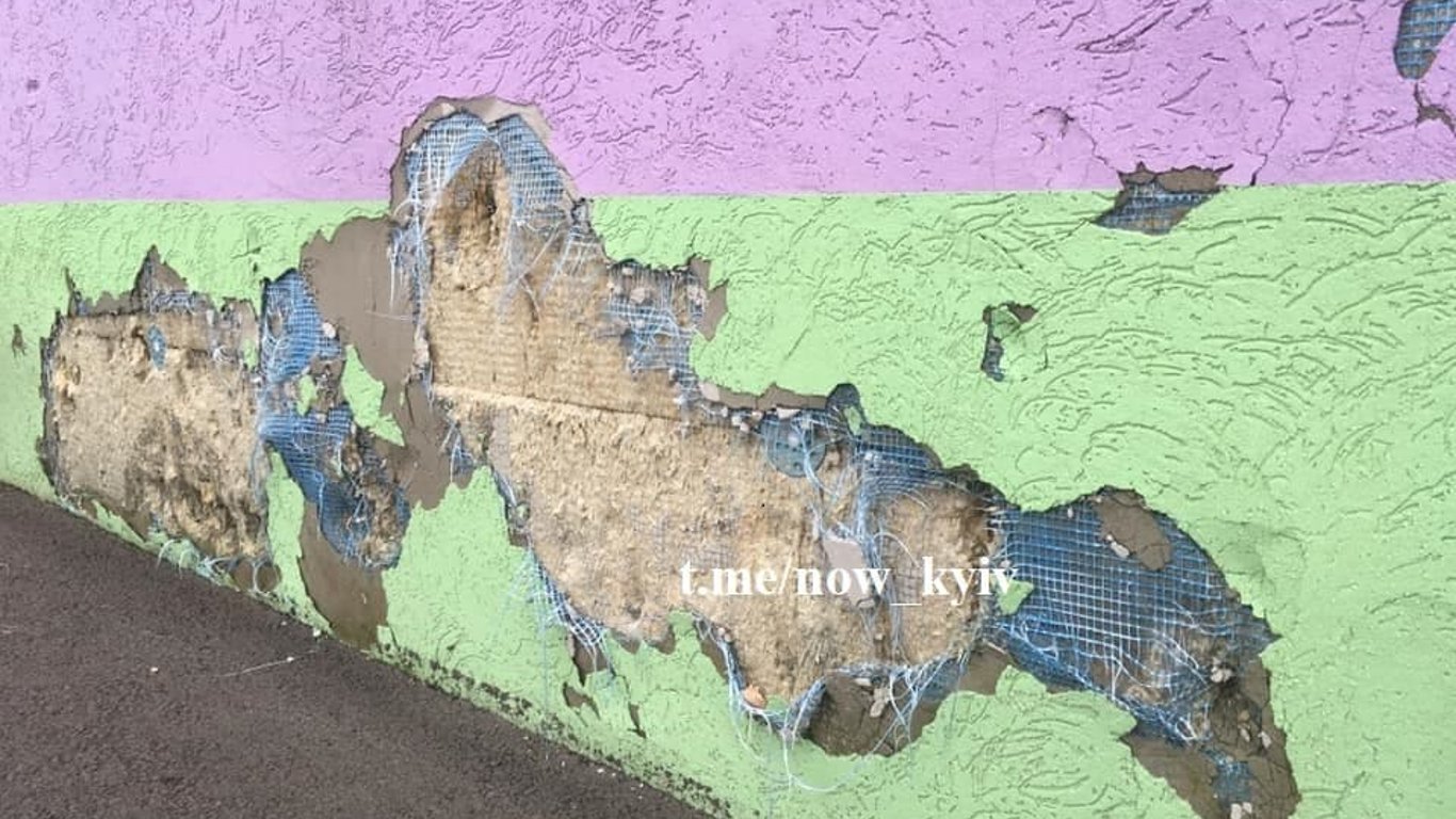Зазначається, що в академічному ліцеї №1 у Київській області нещодавно провели ремонт. Однак, вже зараз штукатурка масово відвалюється зовні будівлі цілими шматками.
