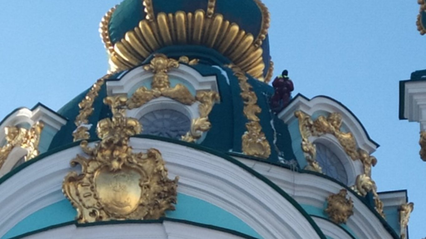 У Києві після тривалої реставрації, сильні пориви вітру вибили скло в металевій рамі люкарни купола Андріївської церкви. Для заміни скла були запрошені промислові альпіністи.