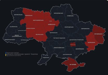 Мапа повітряних тривог виглядає так: