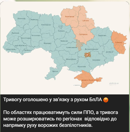 Нагадаємо, повітряна тривога в областях почала ширитися близько першої ночі. Повідомляли про загрозу балістичного озброєння. Згодом Повітряні Сили України повідомили про загрозу атаки безпілотників.