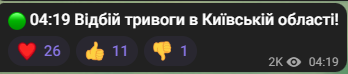 Почали оголошувати про відбої повітряної тривоги в областях. Зокрема, і в Київській області.
