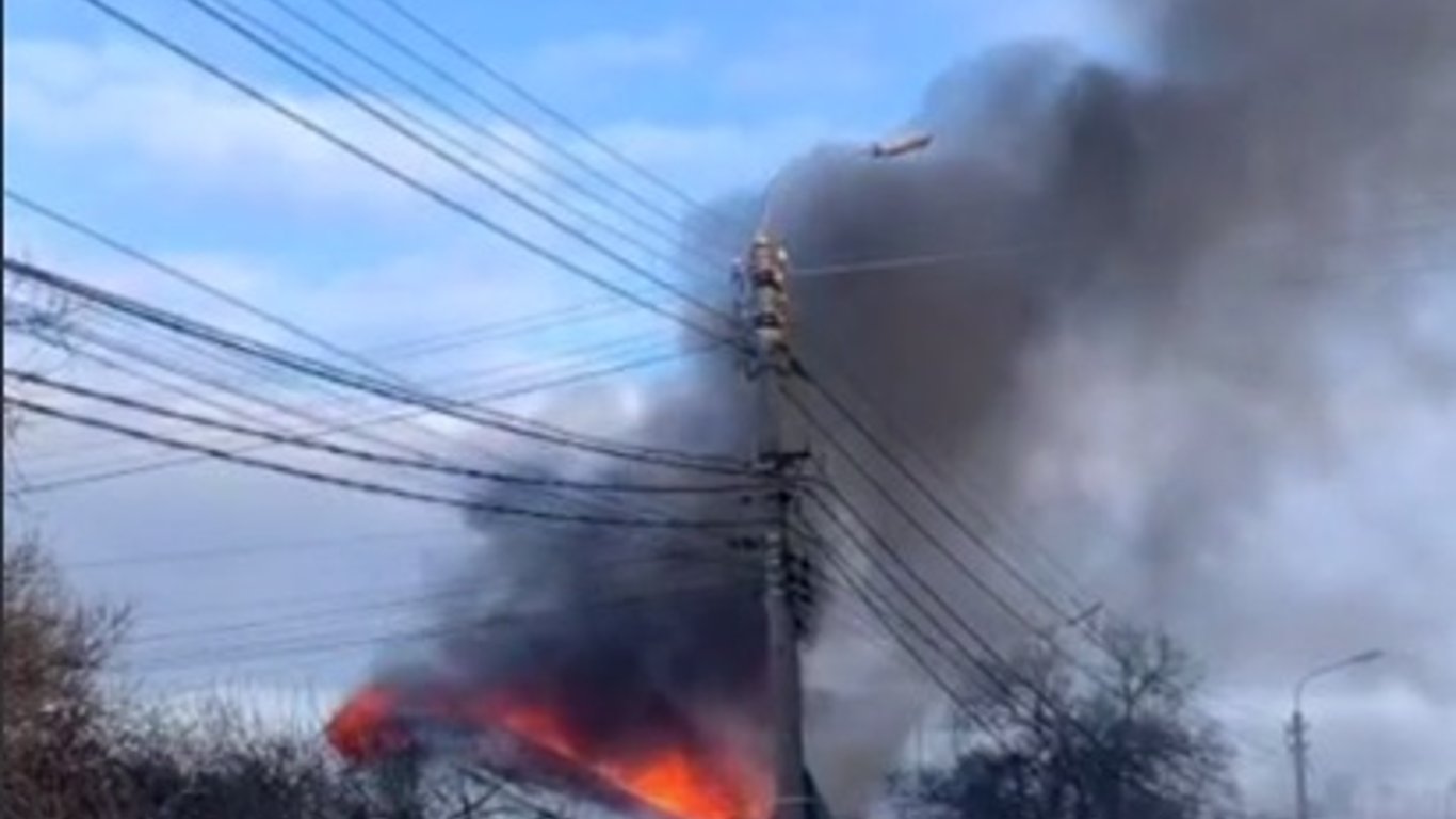 На відео, знятому на місці події, видно, що вогонь охопив майже всю будівлю, а чорний дим вже валить з-під даху і застилає мікрорайон.