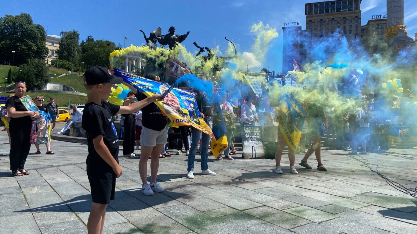 У суботу, 5 липня, в центрі Києва відбулася акція-нагадування "Я без тебе, як жовтий без синього. Поверніть Героїв додому". Її організували рідні бійців 71-ї окремої єгерської бригади.