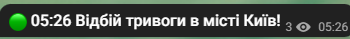 Повідомляється про відбій повітряної тривоги у столиці.