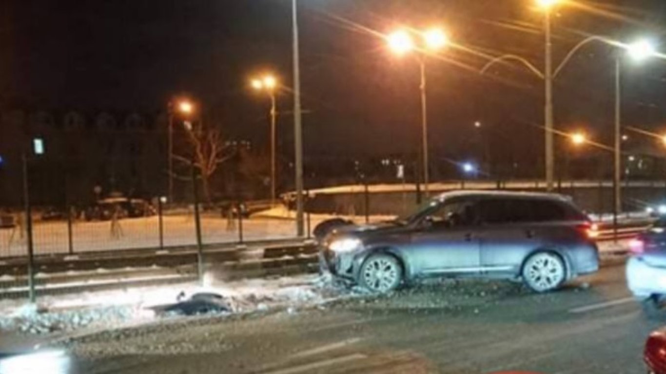 Автомобиль вынесло на трамвайные пути в центре Киева. Фото