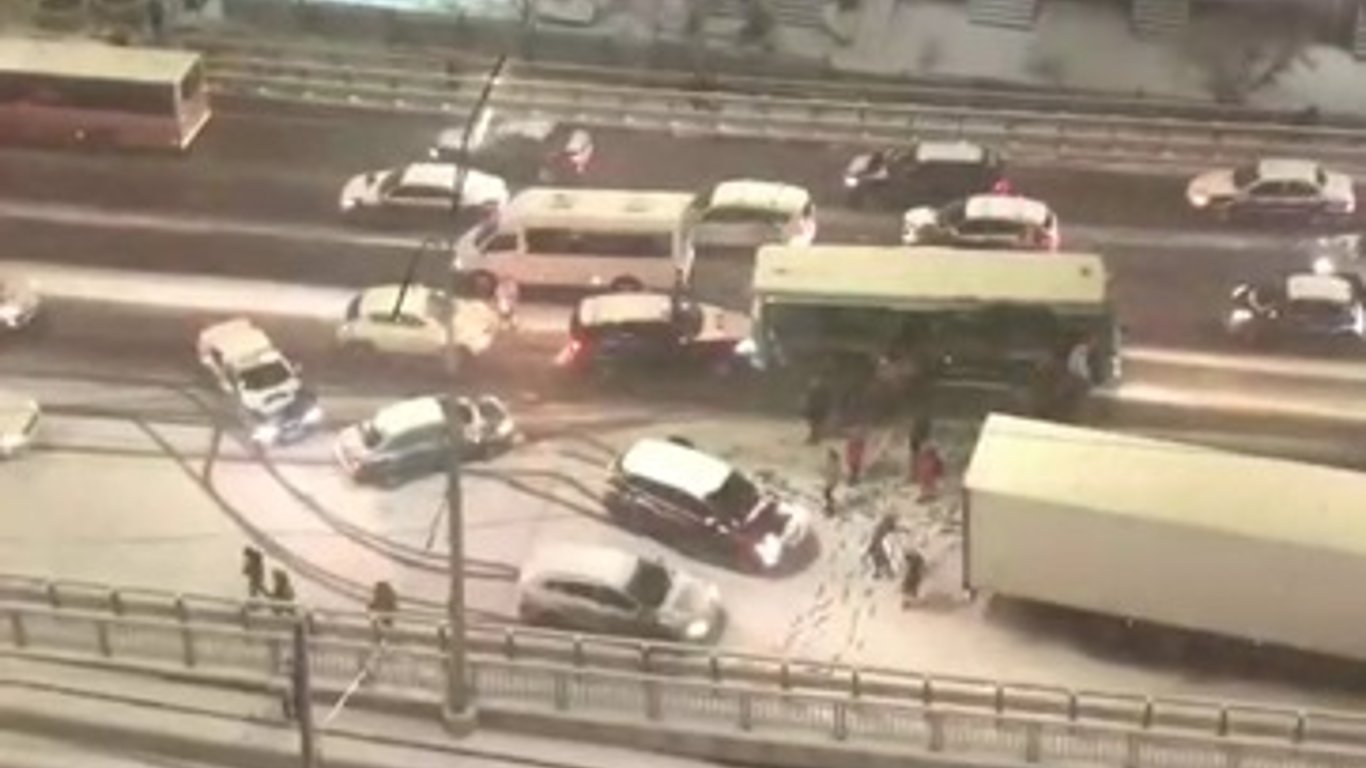 Автомобили сносит с Шулявского моста. Видео