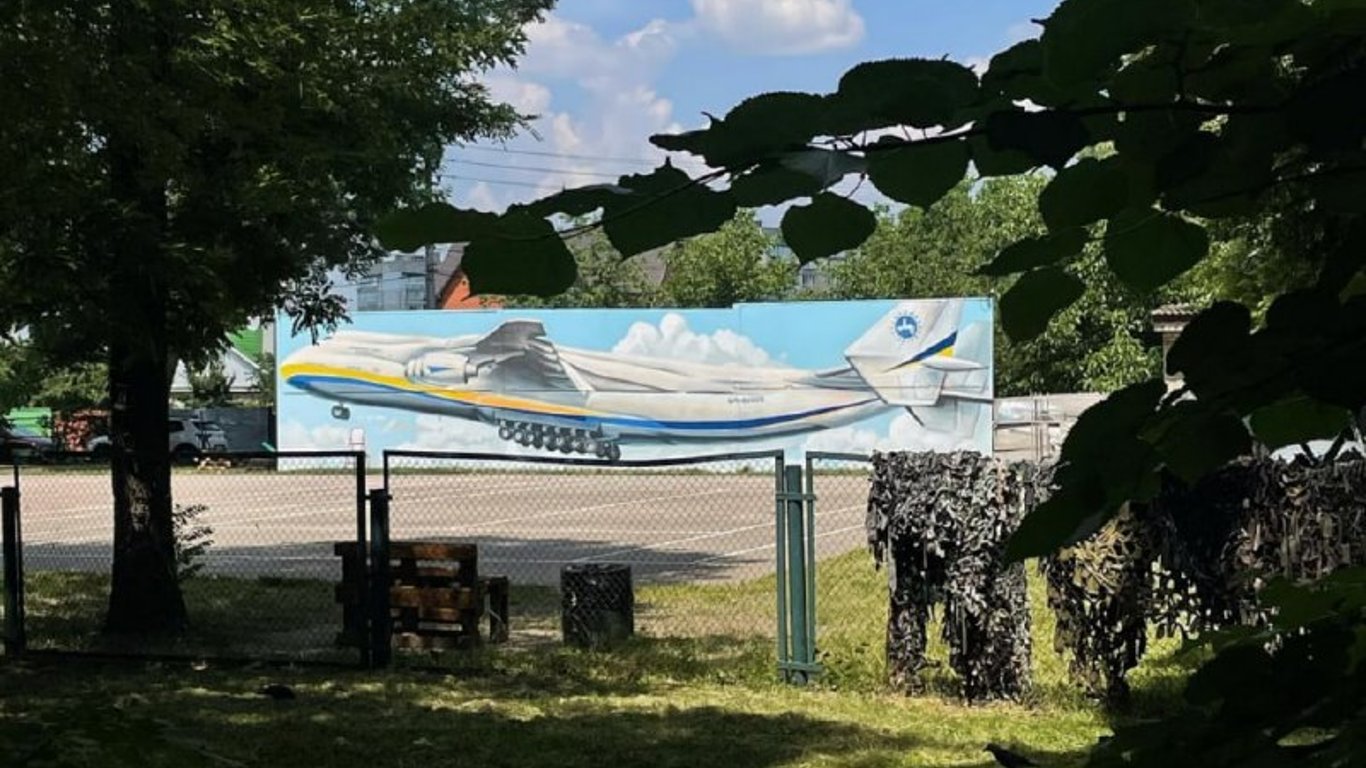 В городе Борисполь Киевской области создали рисунок с легендарным самолетом АН-225. "Мрия" теперь украшает стену теннисного корта в городском парке.
