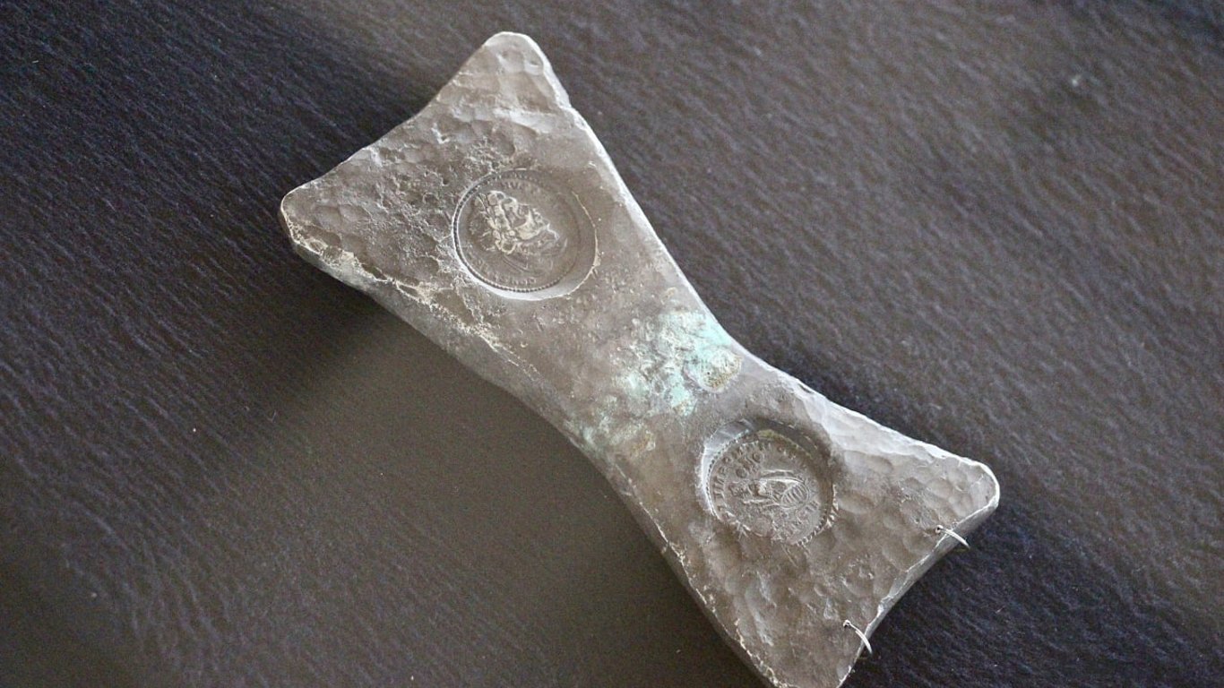 Исследование установило, что это настоящие серебряные слитки времен Священной Римской империи, датируемые IV в. н.е. На них отпечатки штемпелей с изображением императора Константина, которыми тогда чеканили золотые монеты на территории Германии в честь победы над франками.