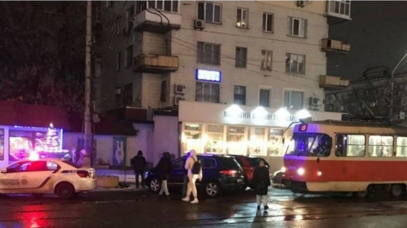 В четверг, 20 января, в Шевченковском районе Киева, водитель оставил машину в неположенном месте и перегородил движение трамваев.