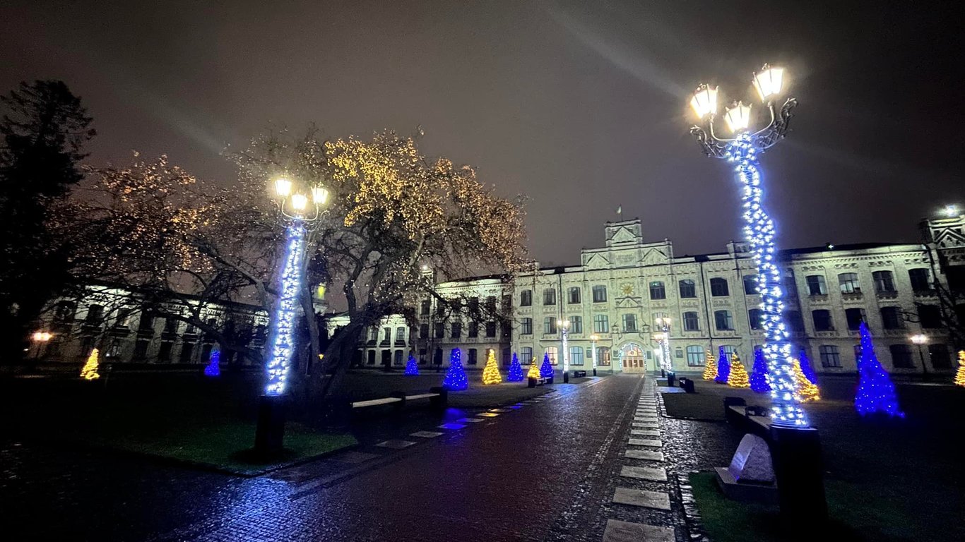 Главный корпус КПИ оригинально украсили к Новому году. Фото