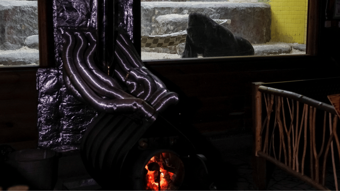 Сотрудники Киевского зоопарка круглосуточно работают, чтобы согреть гориллу Тони и других животных, которые страдают из-за низкой температуры во время блэкаутов. Работники приносят в печь дрова, чтобы в клетке примата поддерживалась комфортная температура.