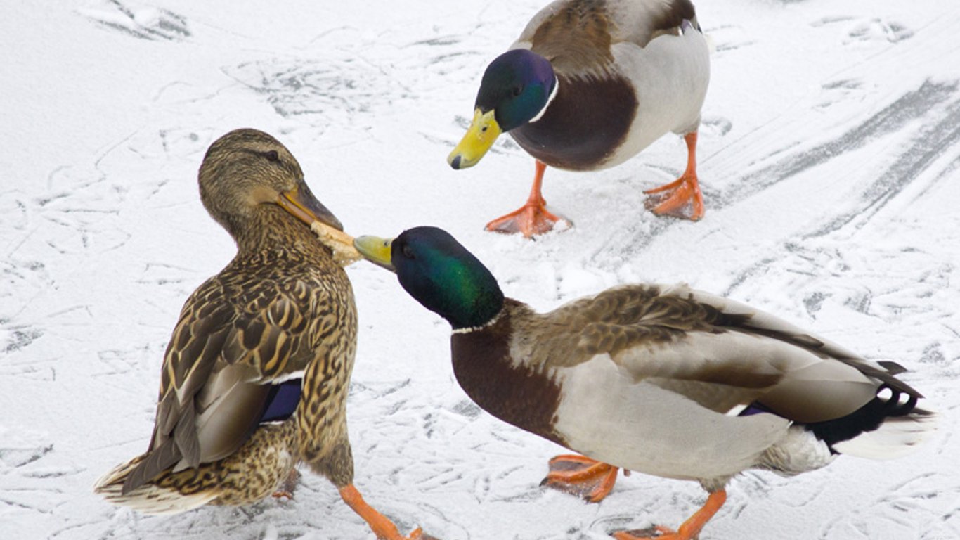 В холодное время года необходимо помогать синичкам и воробушкам. Водоплавающие птицы накапливают жир в теплое время года, и если зимой птица не может найти себе пищу на водоеме, она отправится туда, где можно поживиться.