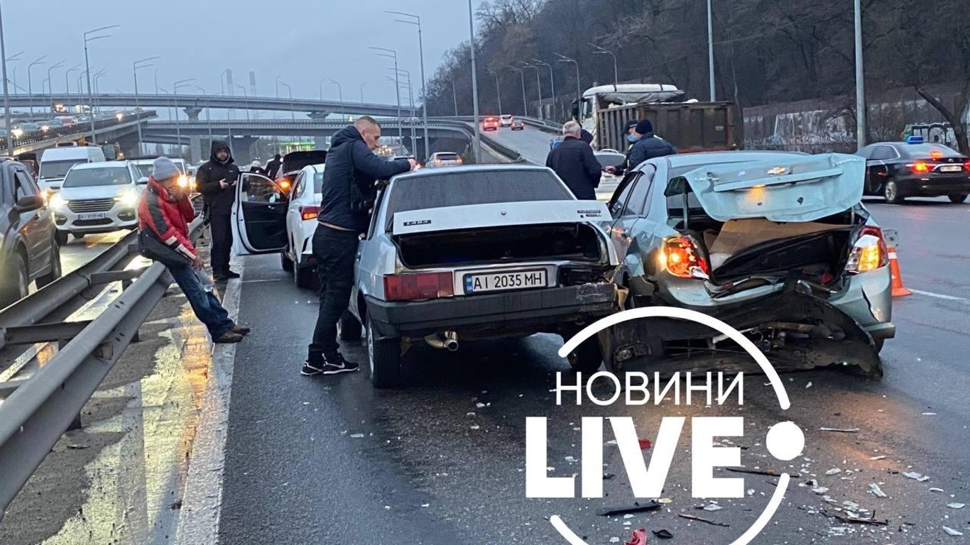 На Наднепрянском шоссе произошло масштабное ДТП: столкнулись пять автомобилей