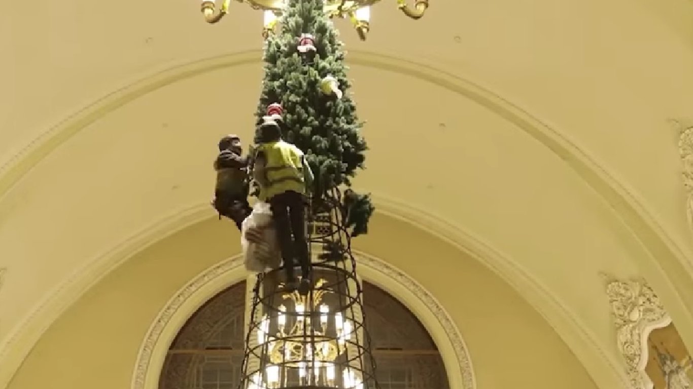 На Центральном ЖД вокзале Киева показали установку "елки за 5 миллионов". Видео