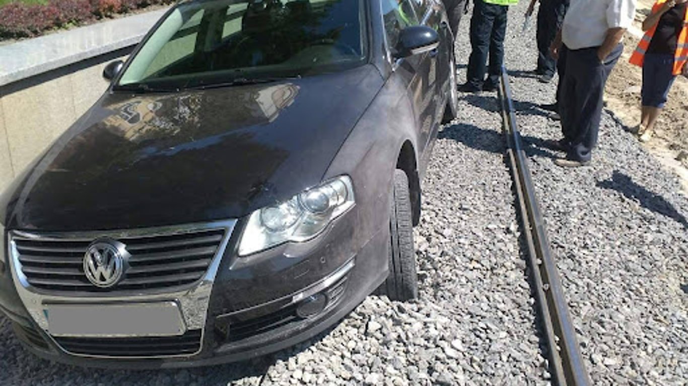 По словам очевидцев, водитель легковушки пытался объехать пробку. Однако не рассчитал высоту путей, и, заехав на них, застрял.