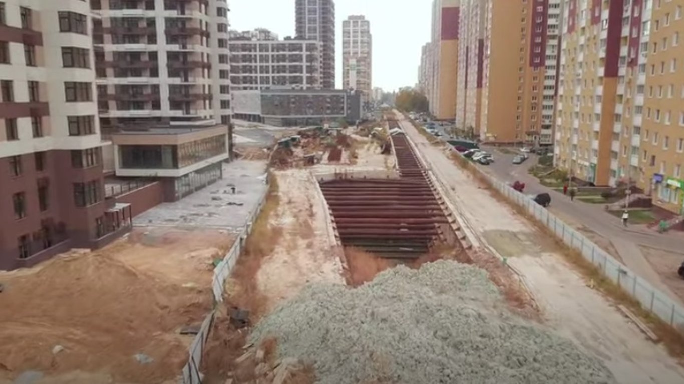 В сети опубликовали видело, снятое беспилотником, поднятым над местами строительства линии Киевского метрополитена Сырец - Виноградарь.