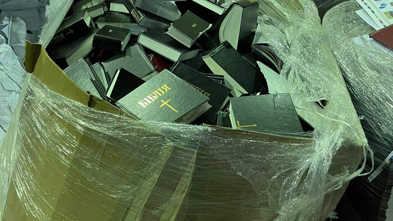 Под Киевом на переработку сдали сотни порезанных Библий. Фото
