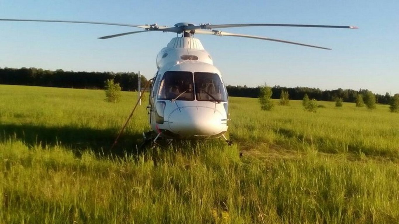 На видеокадрах видно, что вертолет без специалиста приземляется посреди поля, а не на специально оборудованной площадке. На данный момент объяснений экстренной посадки нет.