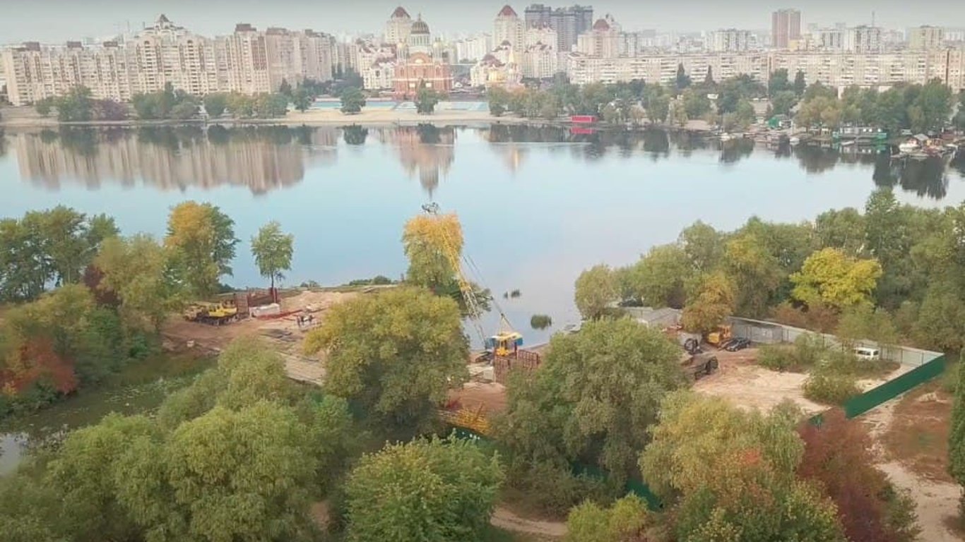 В начале сентября начались подготовительные работы к строительству Оболонского пешеходного моста. Строители работали со стороны улицы Приречной на Оболонский остров.