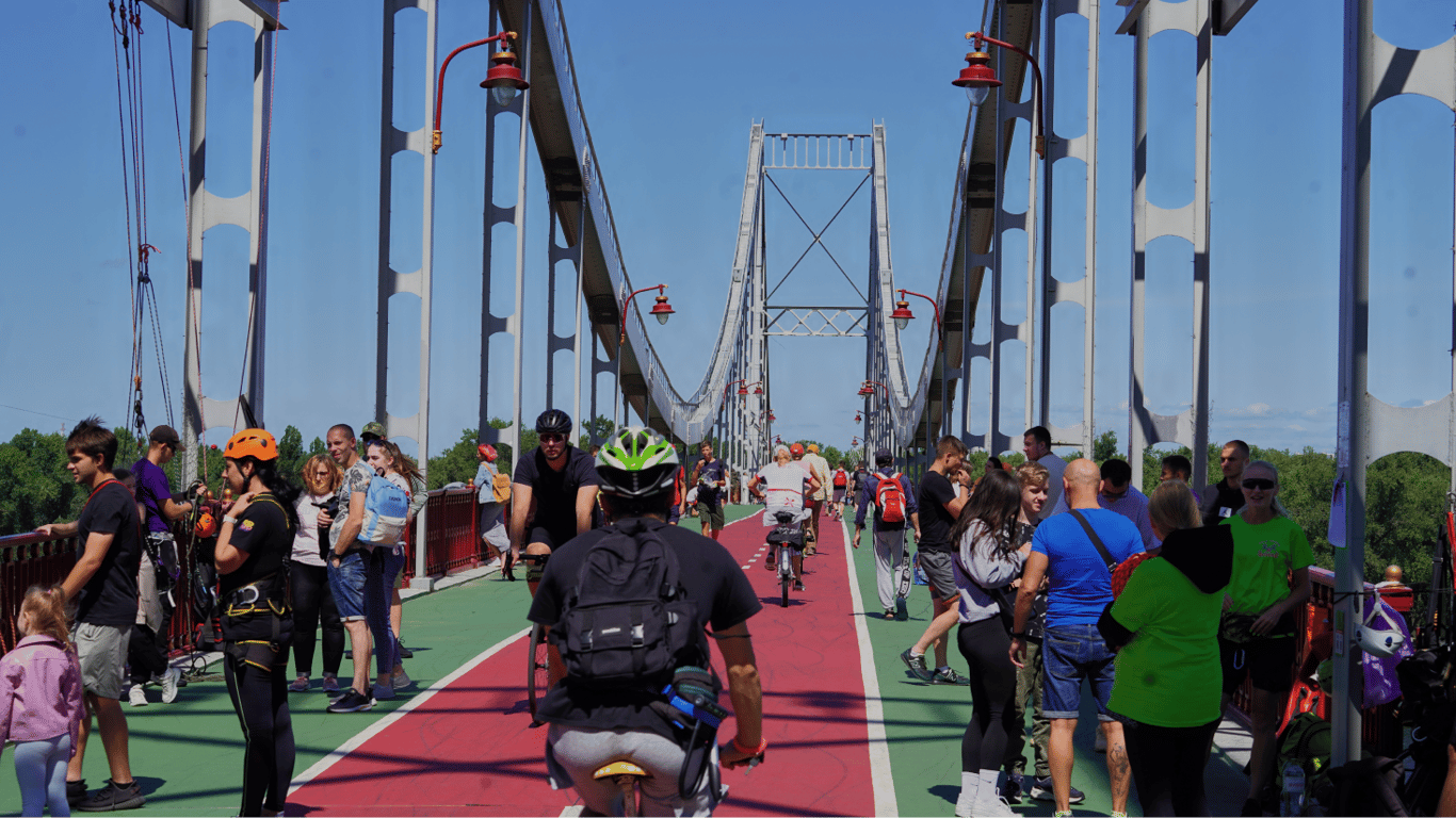 Парковый пешеходный мост является одним из символов города, популярным среди киевлян и туристов маршрутом к зеленым зонам на Трухановом острове.