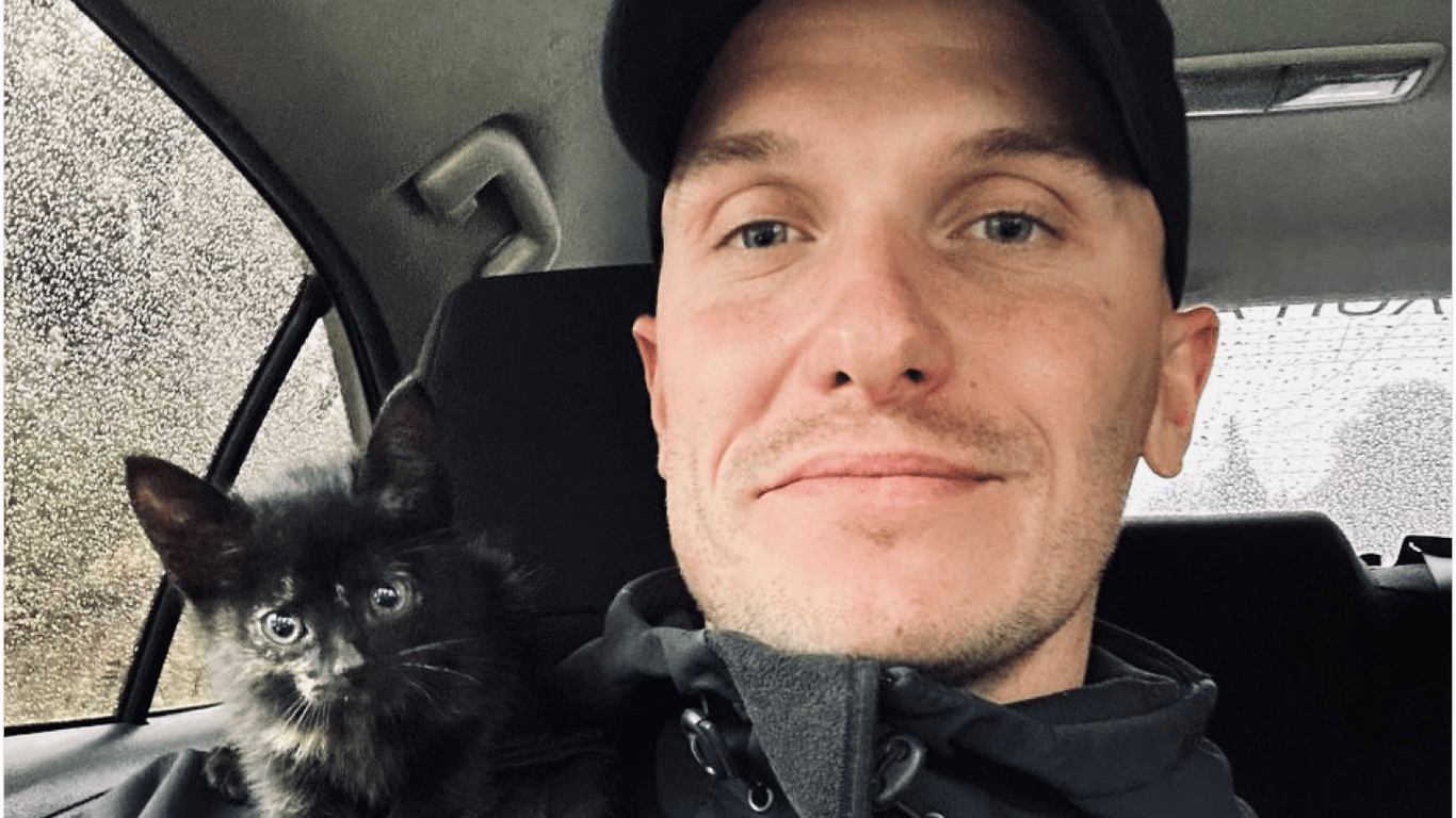 В Киеве полицейские спасли котика, бегавшего по проезжей части. Они увидели промокшее и обессиленное животное посреди дороги.