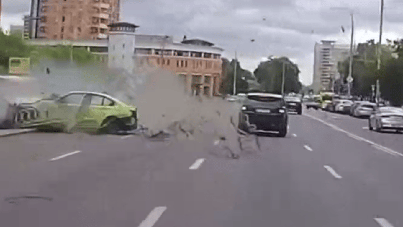 В Киеве разбитое авто вылетело на встречную полосу — видео ДТП