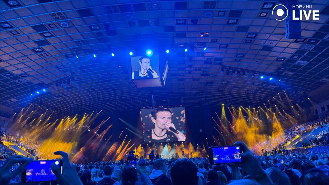 Во время концерта сирена воздушной тревоги дважды прерывала пение Святослава Вакарчука и игру инструментов, на которых играли музыканты.