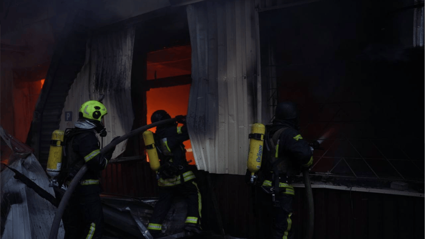 В Соломенском районе обломки вызвали пожар на открытой территории, отдельными очагами. В результате атаки загорелся фасад складского здания, пожар быстро ликвидировали.