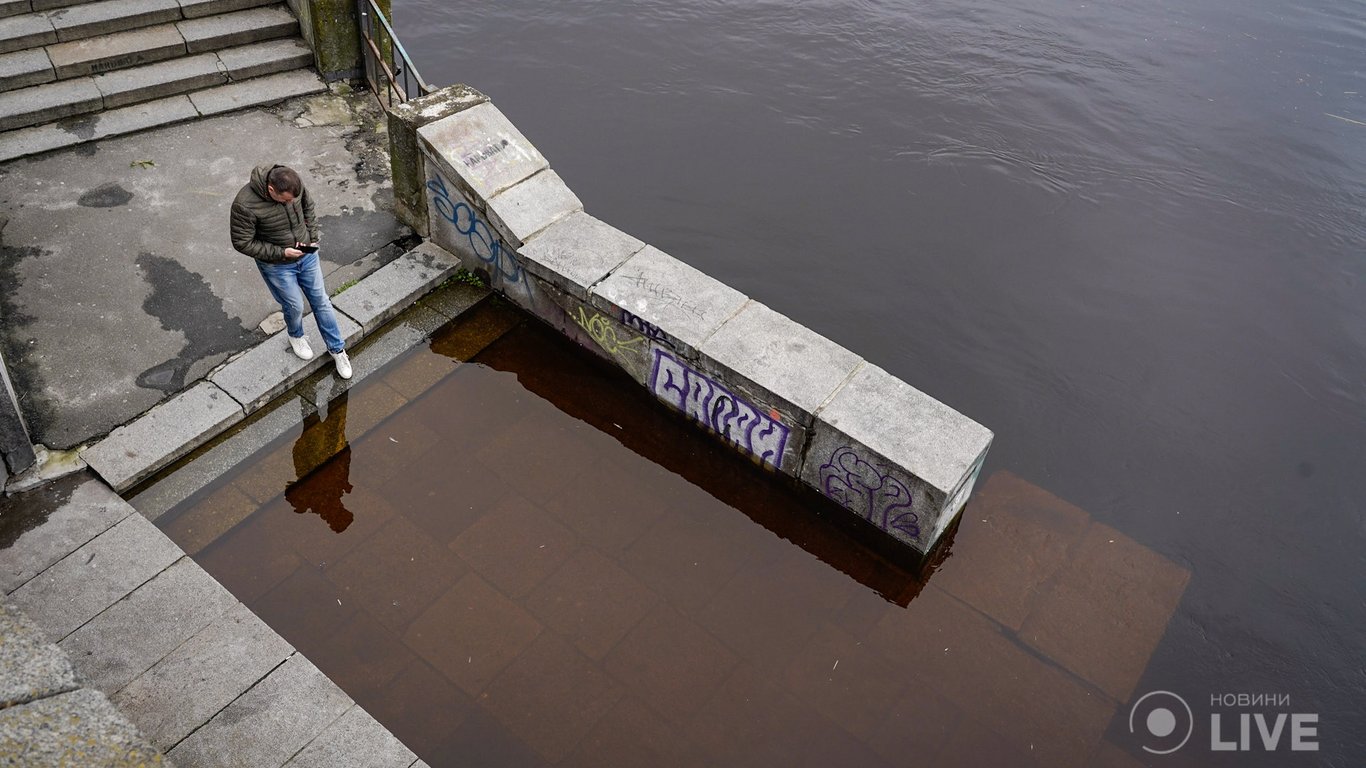 Вода в реке поднялась на несколько метров. Береговая линия оказалась под водой. Набережная, где любили сидеть рыбаки и прогуливаться киевляне, вся в воде. В столице и области объявлен І уровень опасности, желтый.