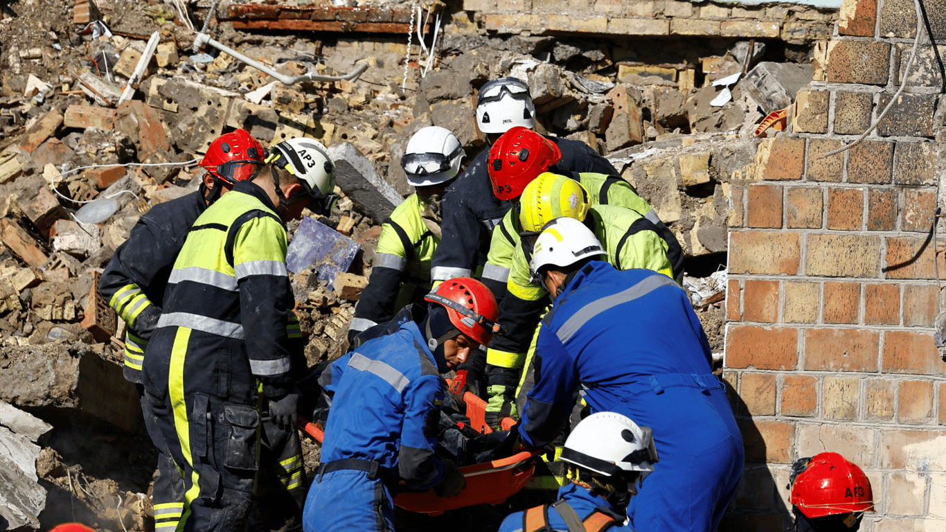 Среди жертв — трое детей в возрасте 2, 14 и 17 лет. Спасательные и экстренные службы продолжают работать на местах попаданий, разбирают завалы и оказывают помощь пострадавшим жителям столицы.