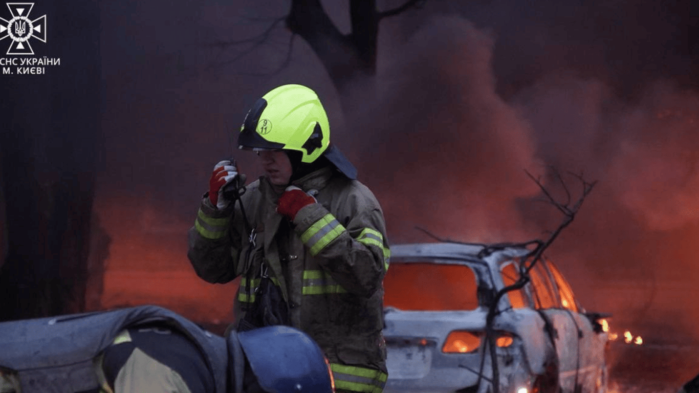 В результате ракетной атаки по Киеву в городе есть значительные разрушения. Горят автомобили, нежилое помещение, на местах работают все экстренные службы.