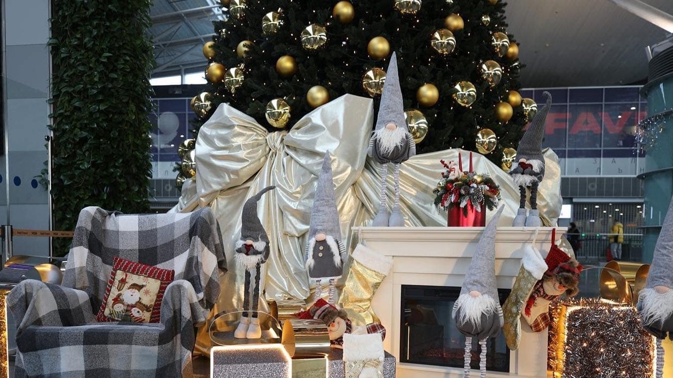 В аэропорту "Борисполь" открыли новогоднюю локацию с красивой фотозоной. Фото