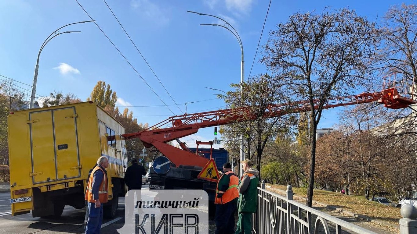 В Киеве коммунальщики устроили аварию: троллейбусы изменили маршруты. Фото. Видео