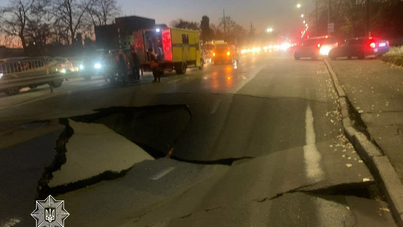 В Днепровском районе Киева провалился асфальт на дорожной части проспекта Алишера Навои, который соединяет бульвар Перова и улицу Генерала Жмаченка.