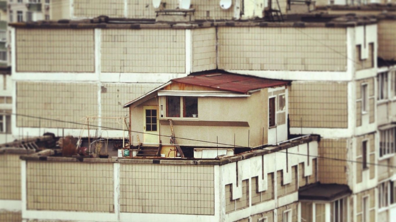В Киеве в одной из многоэтажек мужчина решил построить дачу прямо на крыше. Фото
