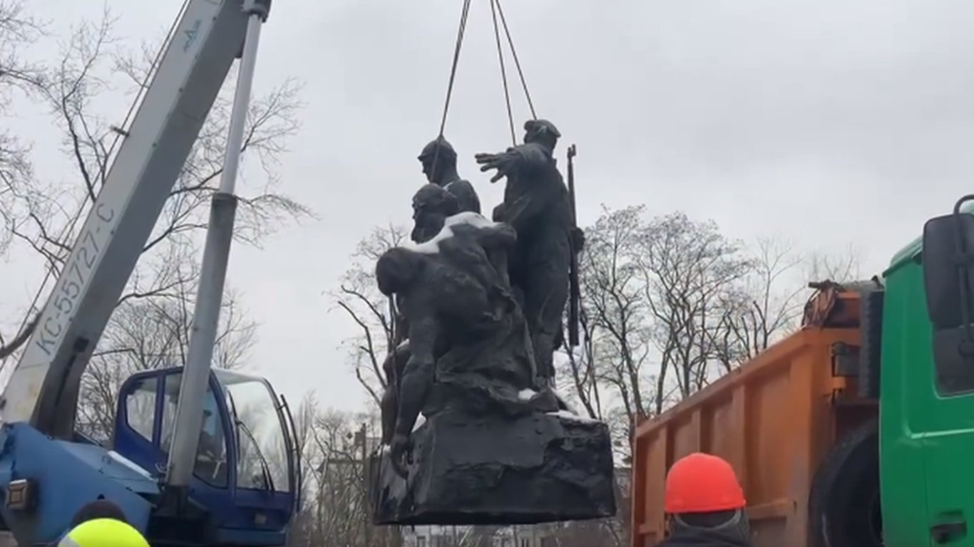 В Департаменте сообщили, что сегодня, 16 декабря, бригада специалистов Киевблагоустройства с помощью техники провела демонтаж конструкции памятника большевистскому экипажу бронепоезда "Таращанец".